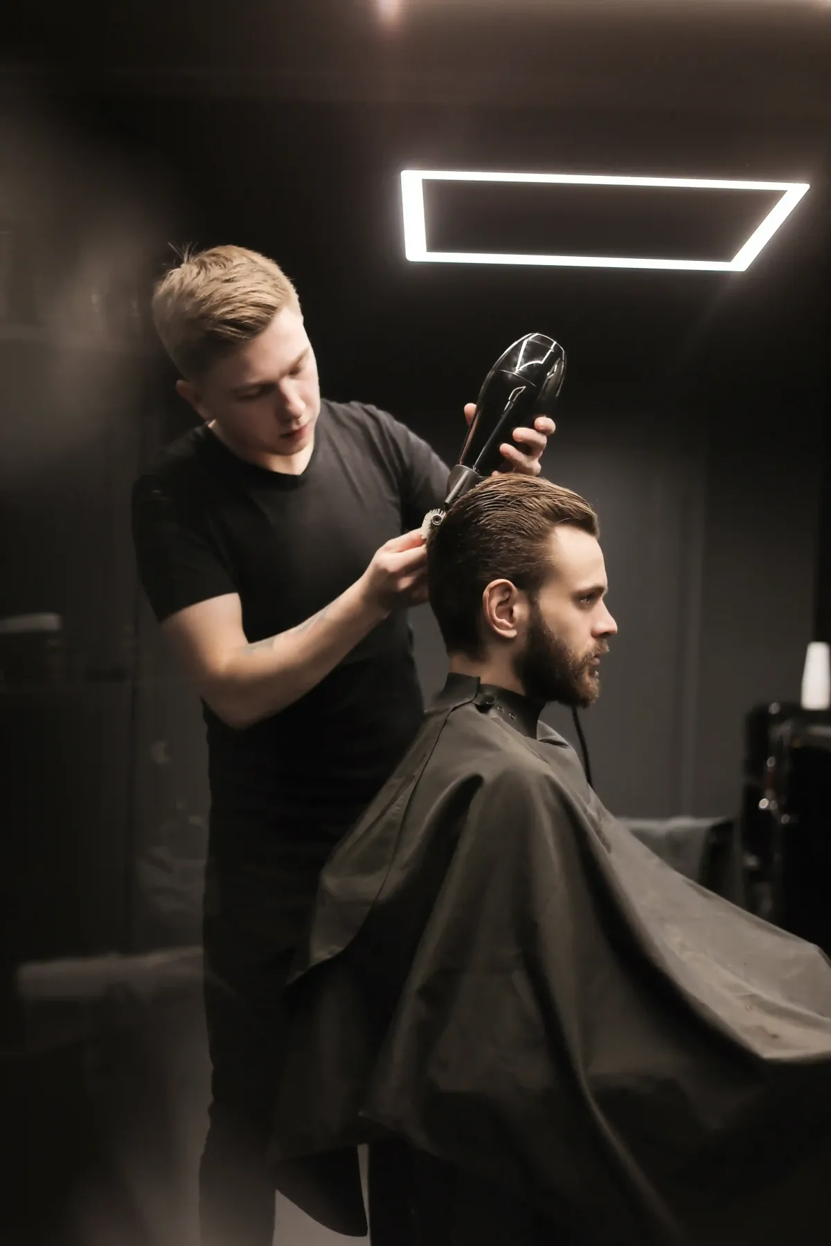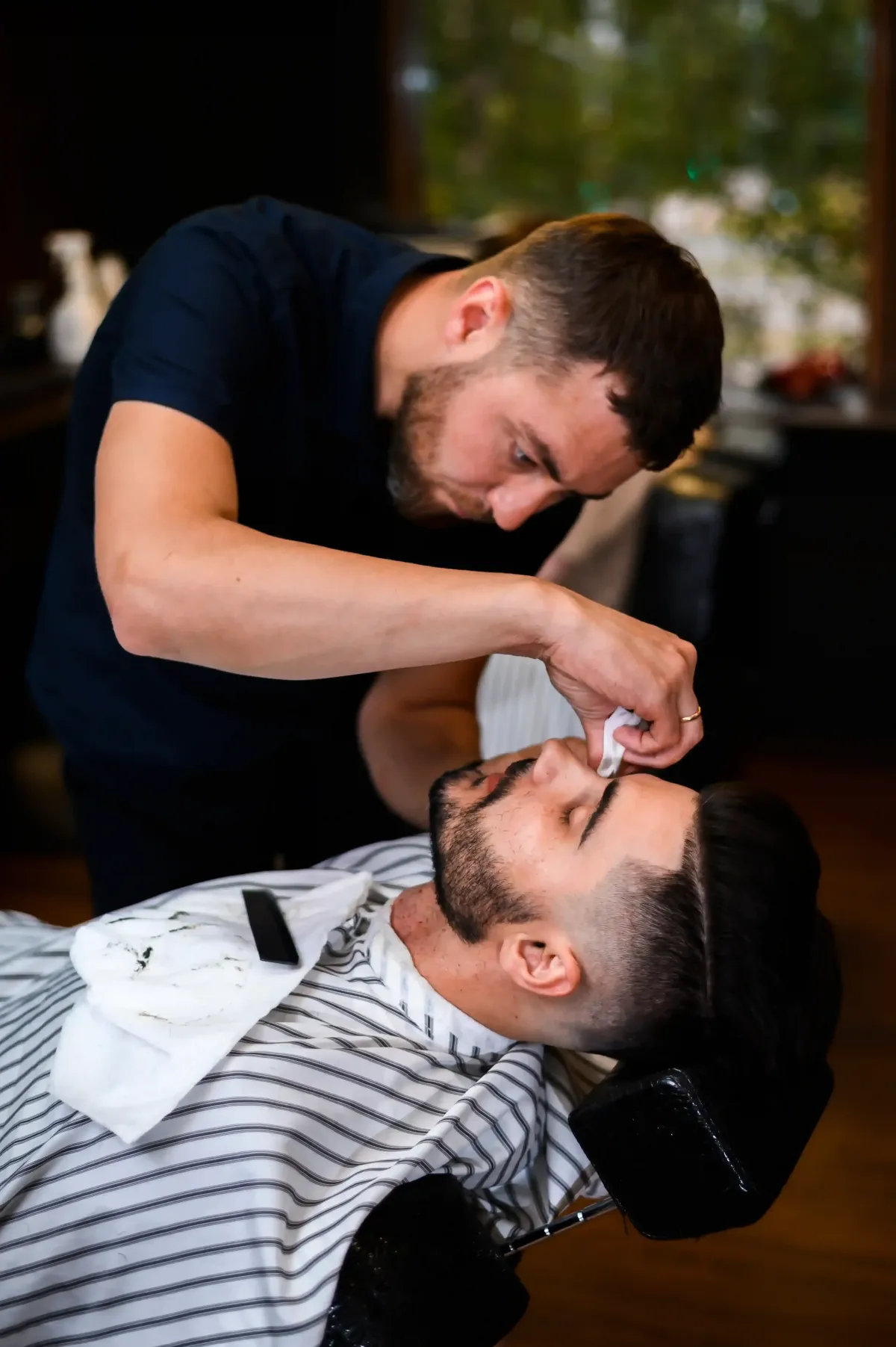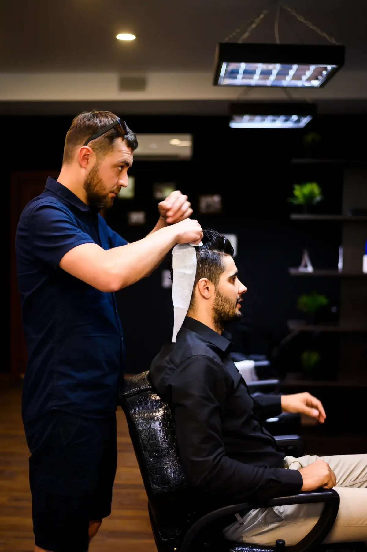 A barber is a professional who specializes in cutting, styling, grooming, and shaving the hair and beards of men and boys.